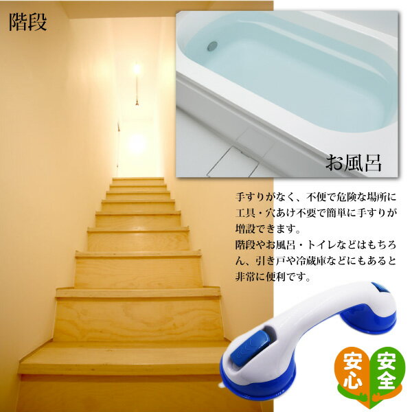 お年寄りや小さなお子様などの 転倒防止 起き上がり 立ち上がりの補助にも役立つ便利グッズです!タイルやユニットバス、壁等硬く平らな面であれば強力吸盤で簡単に取り付けが可能です。