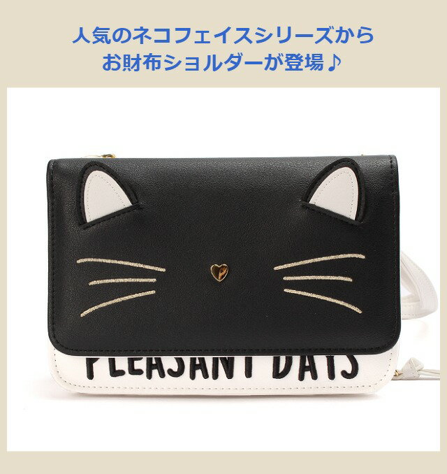 人気の「ネコフェイスシリーズ」から 便利なお財布ショルダーが登場! カードもたっぷり収納できます ショルダーベルトを取り外して クラッチバッグの様に持つのもおしゃれ♪