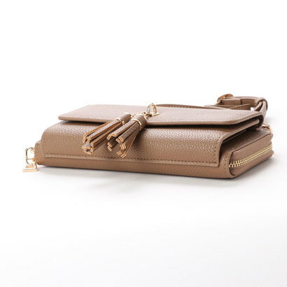 正面のタッセルチャームがポイントのお財布ショルダーバッグです。