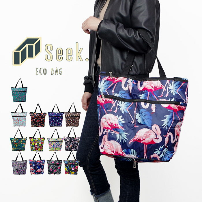 メール便 送料無料 エコバッグ 折りたたみ 大容量 お買い物バッグ コンパクト コンパクトエコバッグ レディース 全15種類 Seek. msp19112925 トートバッグ 軽量 ファスナー 持ち運び バッグインバッグ 手提げ レジ袋 マザーズバッグ サブバッグ