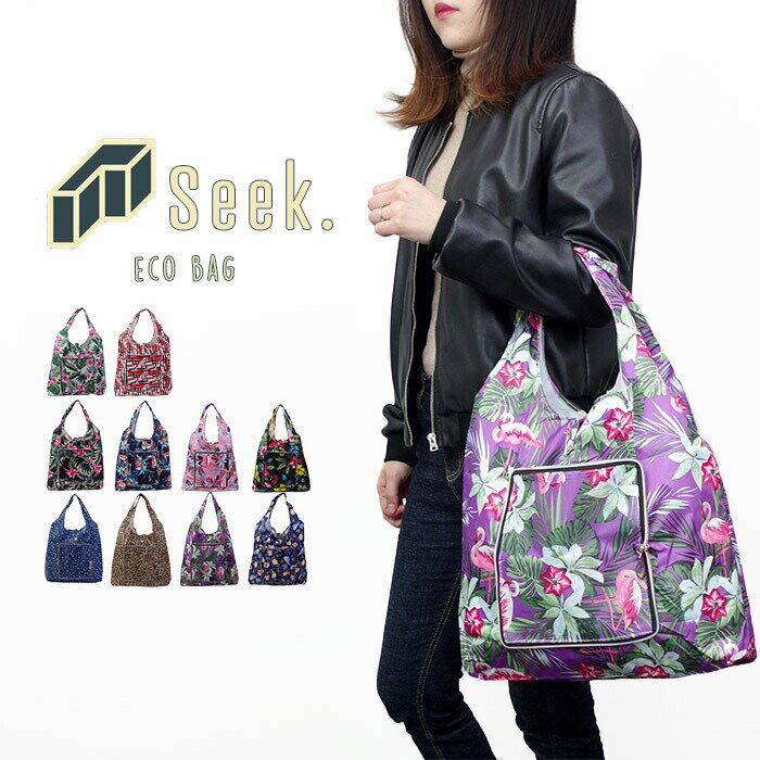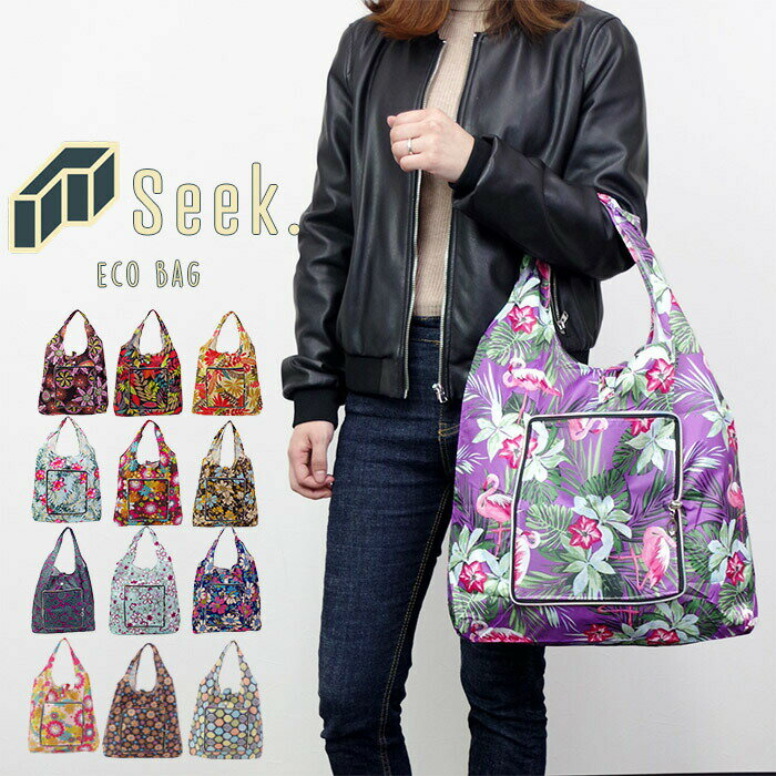 メール便 エコバッグ 折りたたみ コンパクト 大容量 お買い物バッグ コンパクトエコバッグ レディース 全15種類 Seek. msp19112920 トートバッグ レジ袋 軽量 ファスナー バッグインバッグ 持ち運び 手提げ サブバッグ マザーズバッグ