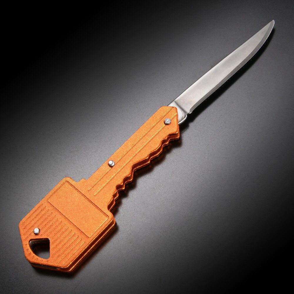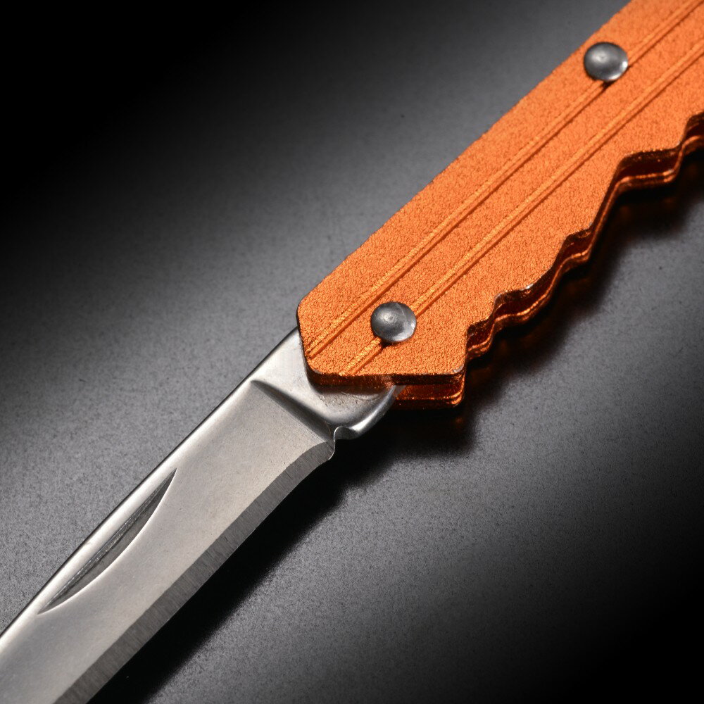 【キーホルダーナイフ 鍵型 スチール [ オレンジ ]】鍵とほぼ同じ大きさで作られたキーホルダーナイフです。