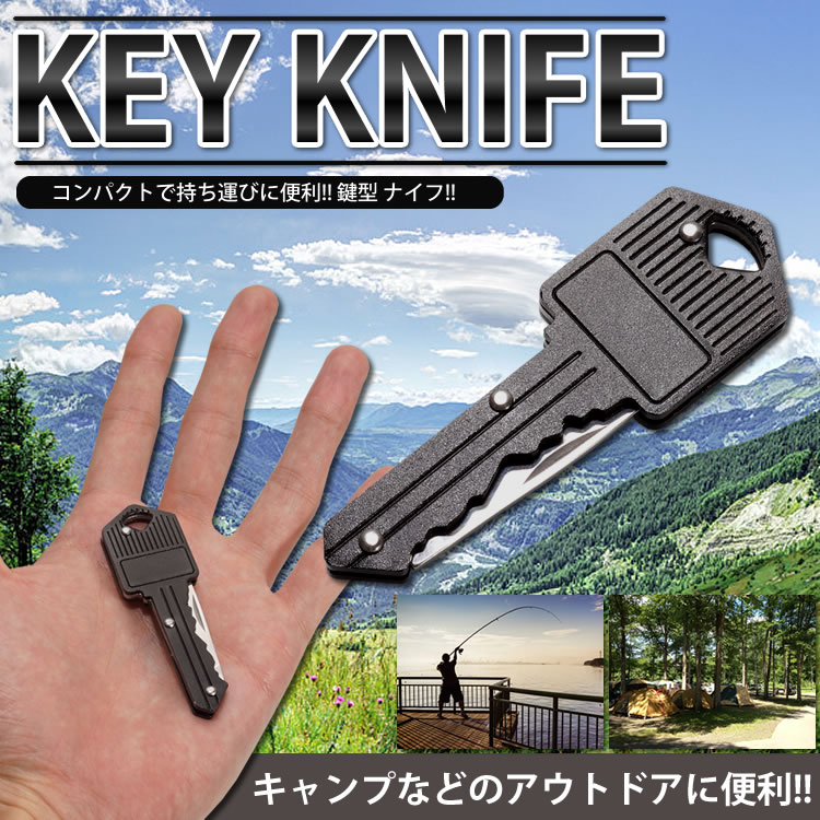 コンパクトで持ち運びに便利!! 鍵型 ナイフ!! 携帯性バツグンの鍵型ナイフ!! 通常の鍵と同じくらいのサイズなので持ち運びに便利です。